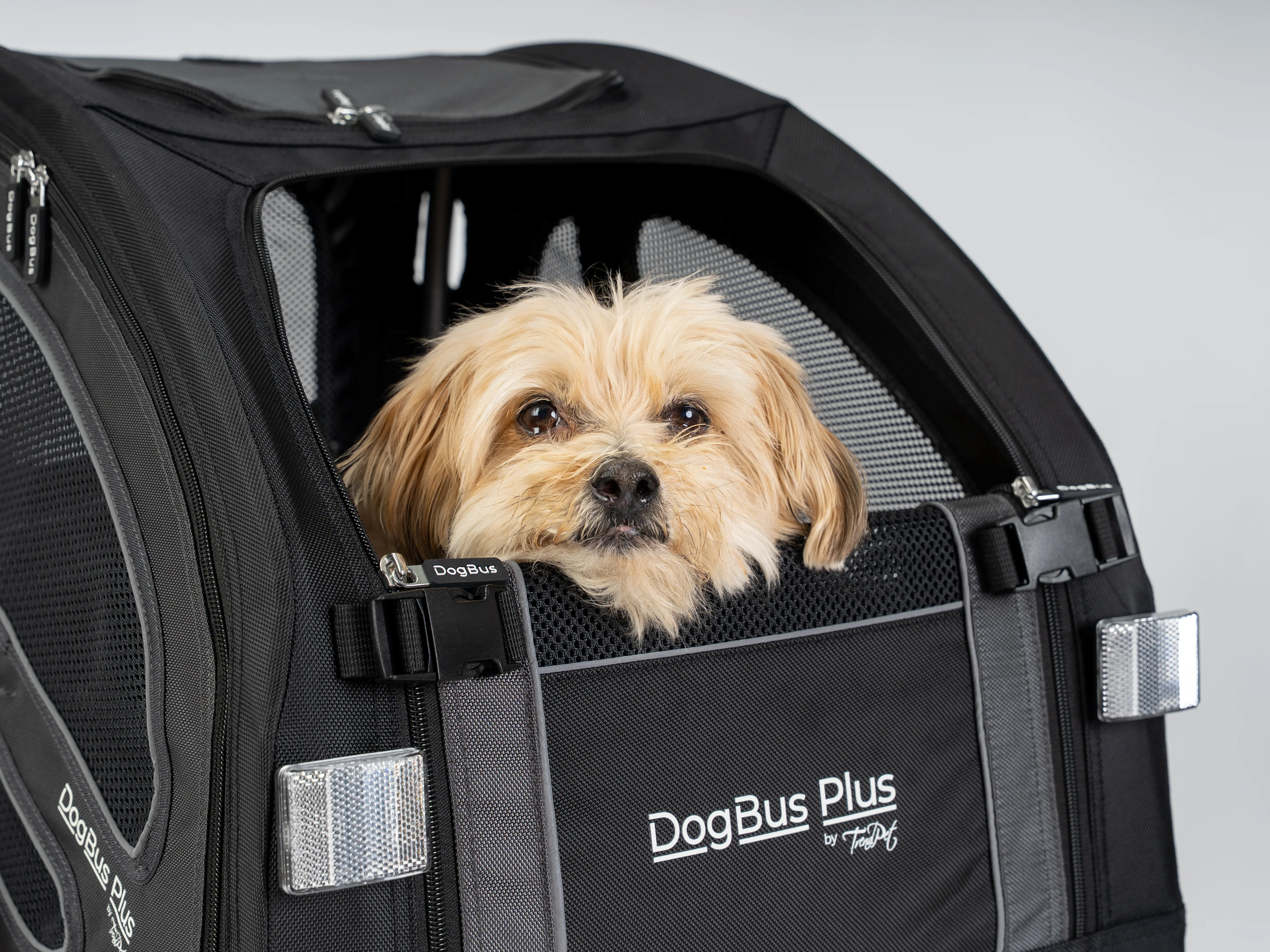 Für zusätzliche Sicherheit im Straßenverkehr verfügt der DogBus Plus über mehrere Reflektorstreifen am Bezug sowie Reflexelemente an den Rädern. So wirst du auch bei schlechten Lichtverhältnissen oder in der Dämmerung gut gesehen – für entspannte und sichere Fahrten zu jeder Tageszeit.