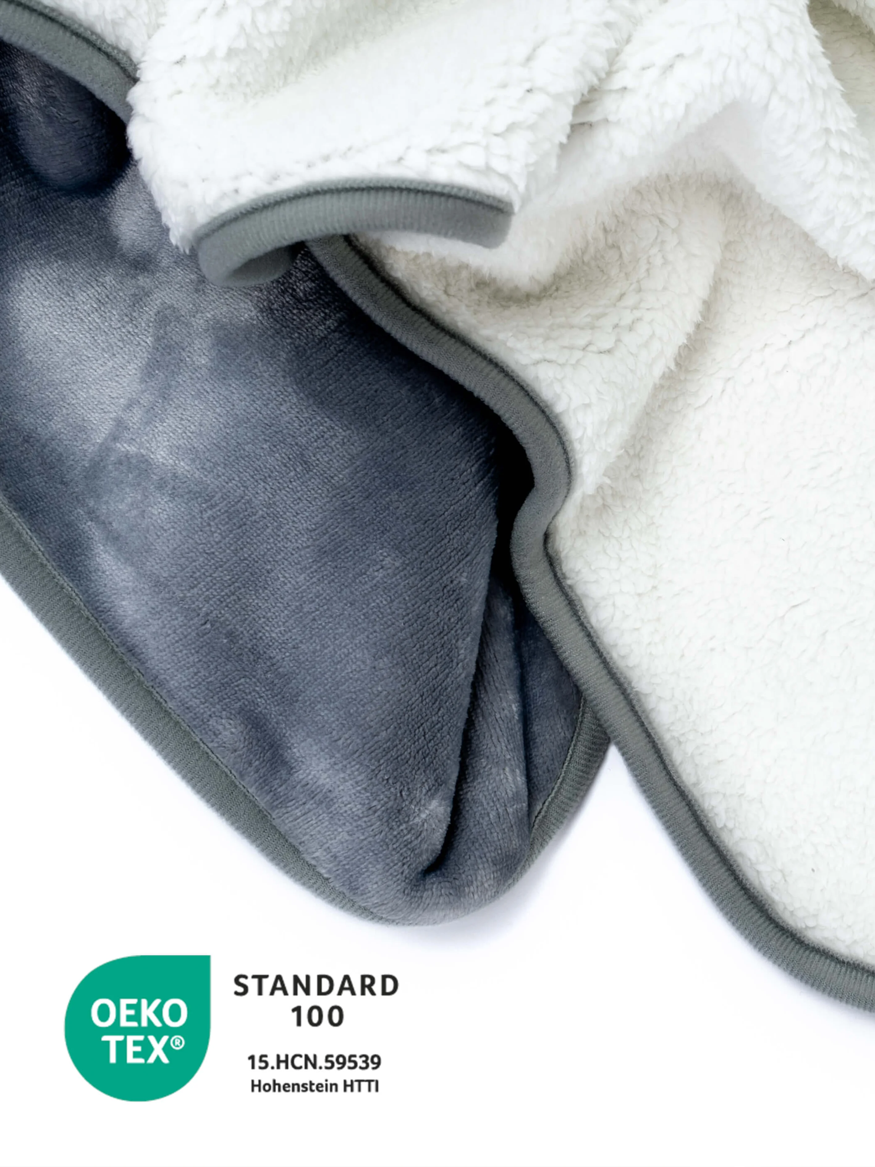 - Eine Seite mit weichem Plüsch, andere Seite aus flauschigem Sherpa-Fleece